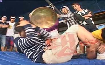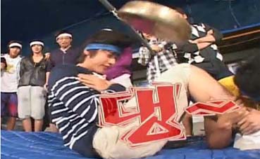 腹筋つかってドラの音を鳴らすゲームで勢いよく頭突きをし